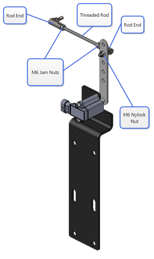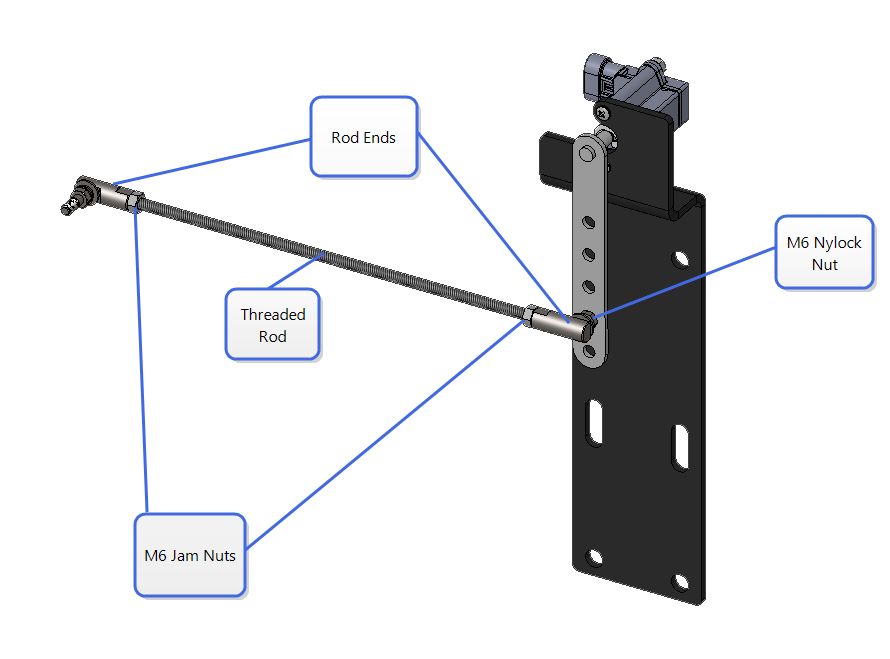 Install the rotary sensor link and rod end to the rotary sensor strap and secure with an M6 nylock nut.