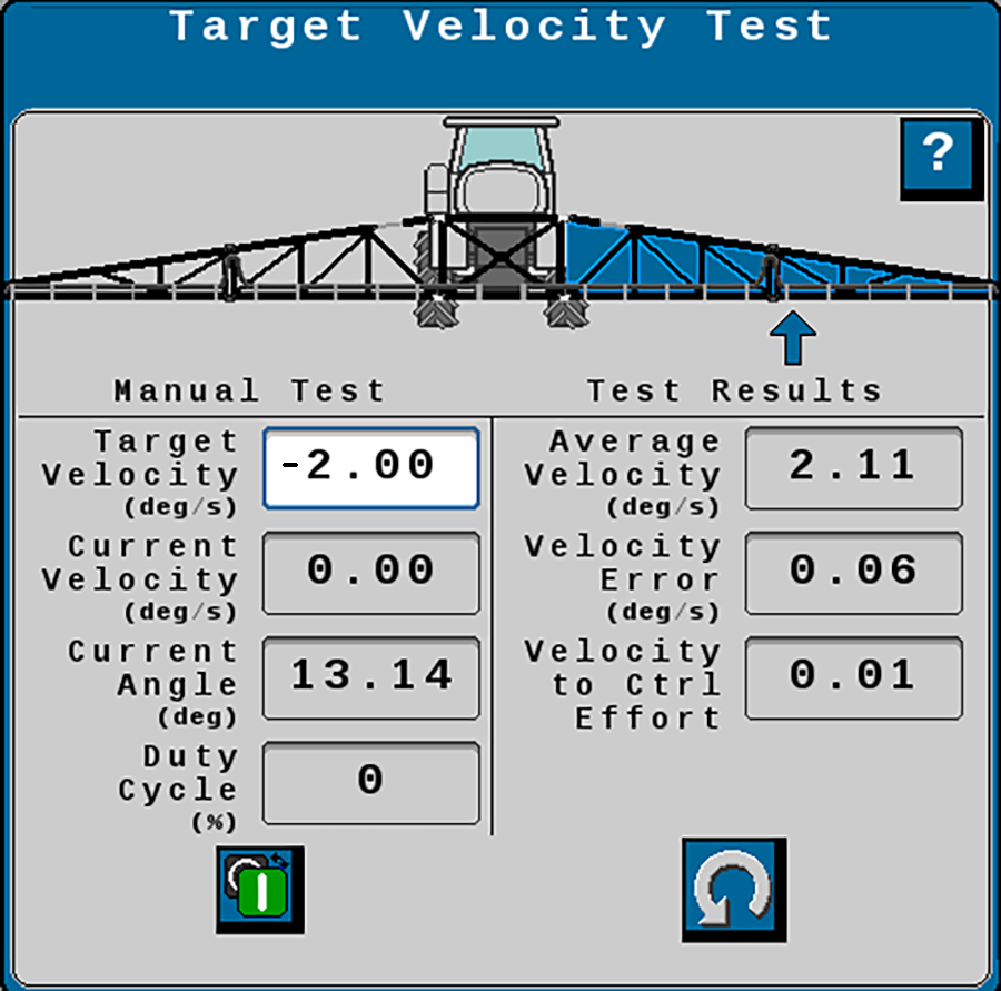 Select Start Test. The boom should lower. When the test is complete, the average velocity will display.