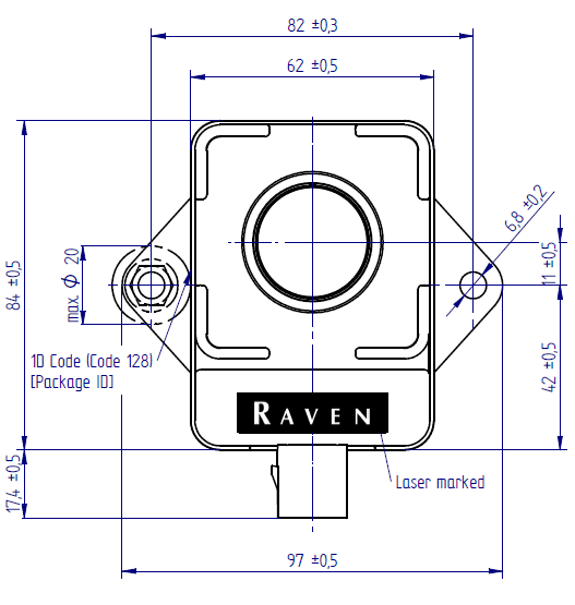 The sensor is 0.45 in. [11.43 mm] above the base plate as seen in the image above and the cone follows the contours of the sensor enclosure body.