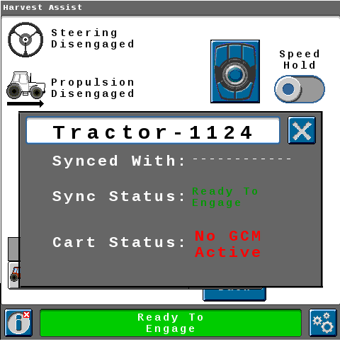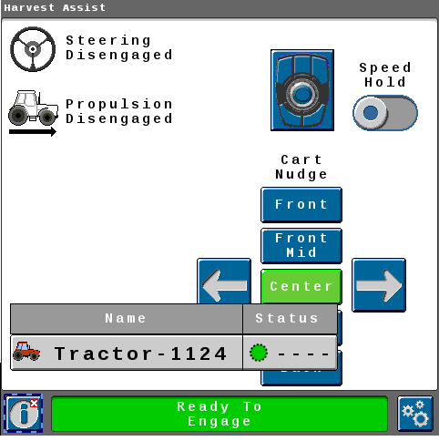 When disengaged the tractor and grain cart will return to previously selected Sync Nudge Location.