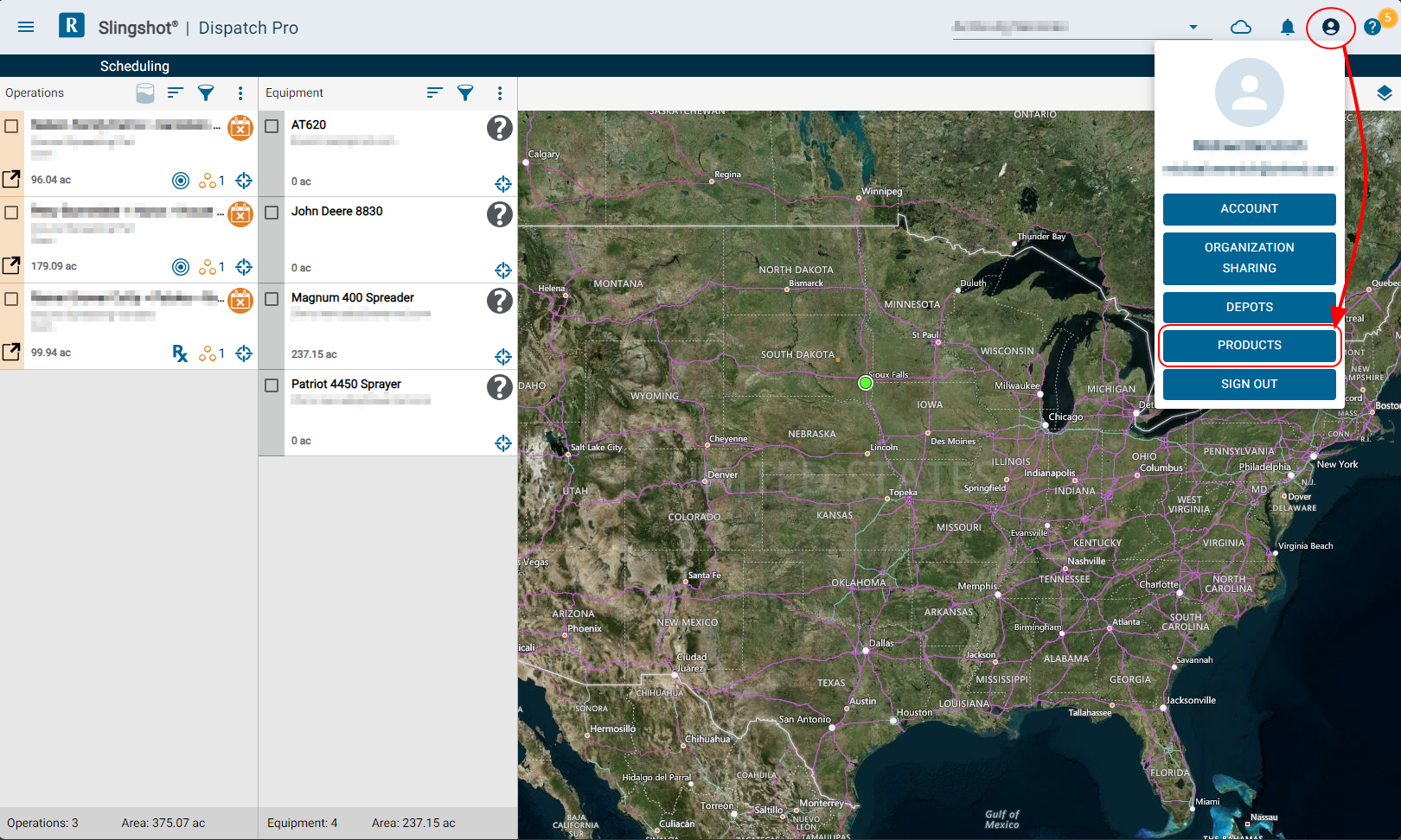 - From the Dispatch Pro main page, select the Account icon in the upper, right corner and select the Products button.